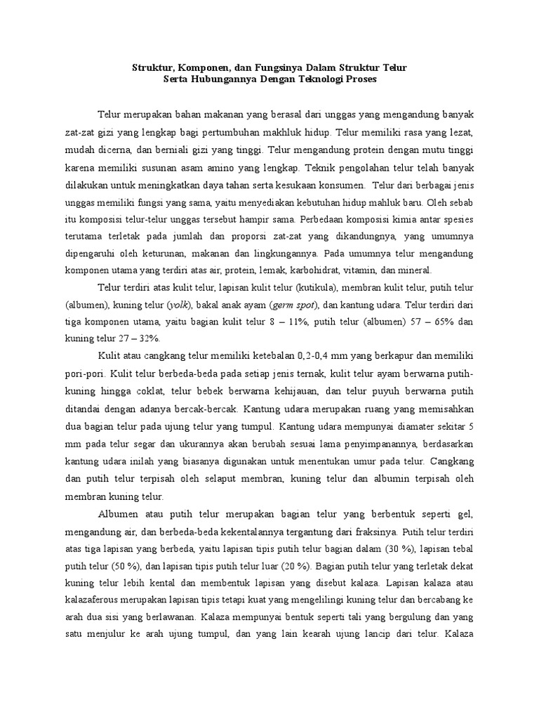 Komponen telur terdiri dari cangkang telur, kuning telur, dan putih telur.